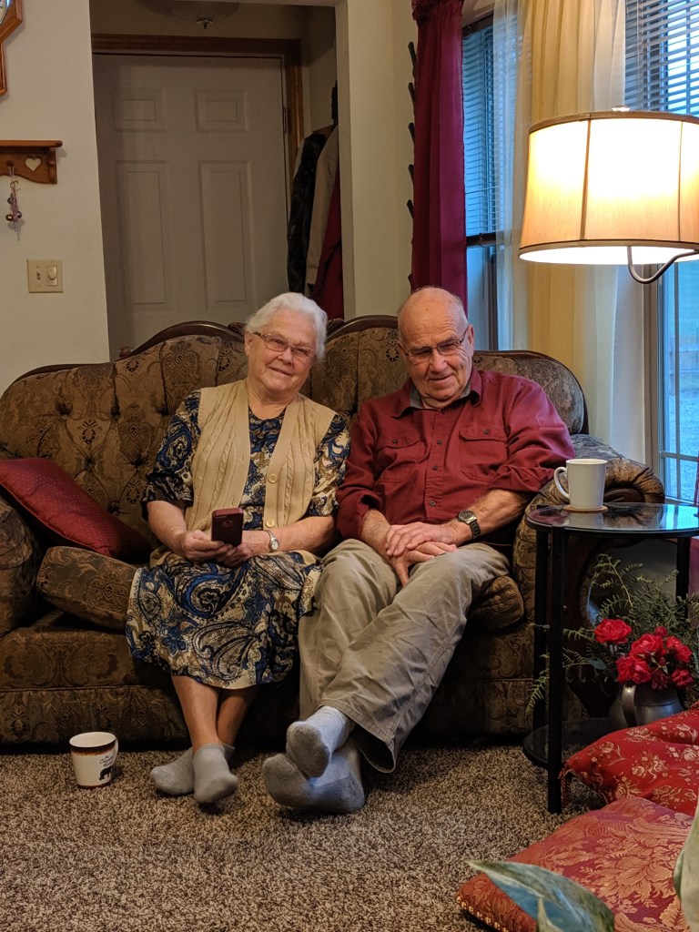 I flew to Idaho to visit my folks. Here is how I found them each morning. We’d visit over coffee until late breakfast time.
