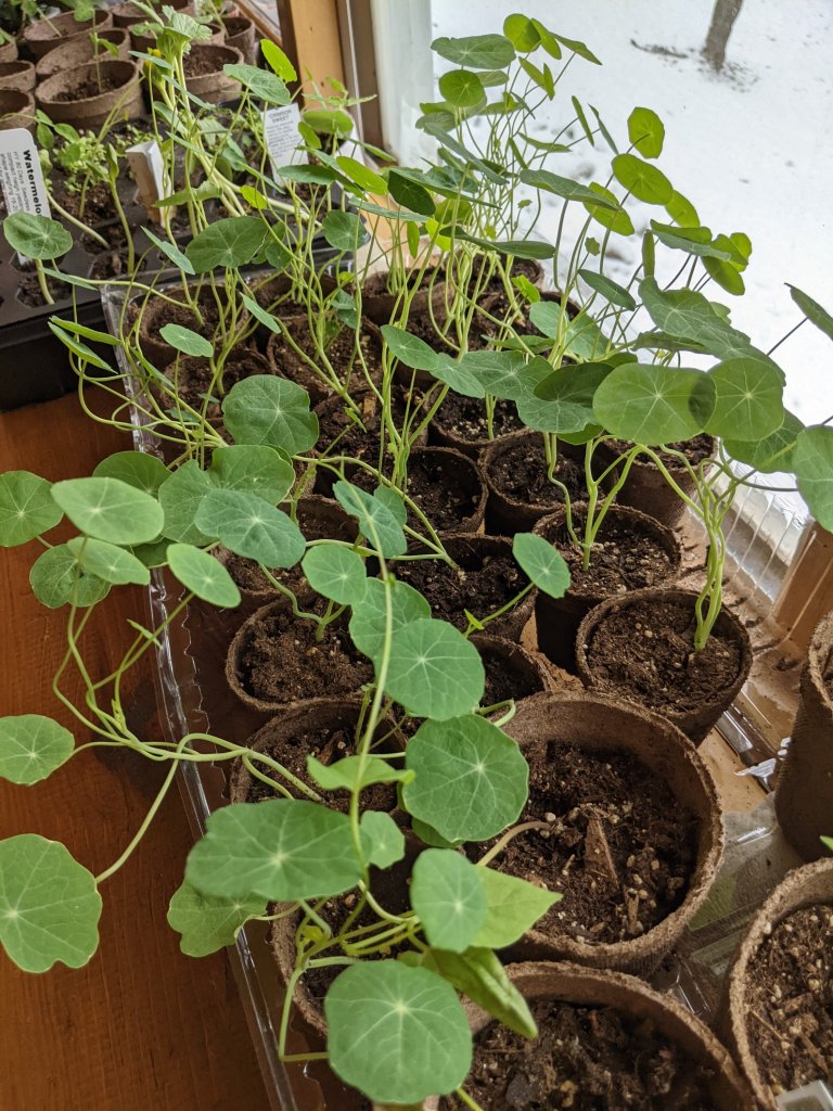 So far it’s been a cold, snowy spring. And that’s okay, really, except that the baby flower plants are going to be pretty leggy before we can plant them out. I love baby plants. This year they seem to love me, too, and are doing well.