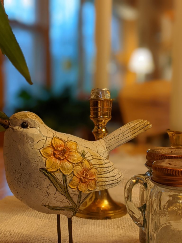 - Our Sunday table, set in beautiful chinaware and cloth napkins. So much mealtime grace and beauty for so little effort.