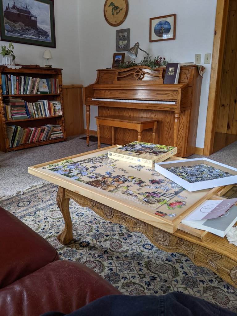 And it’s kind of a lazy afternoon. I’ve been doing a puzzle, (thanks to my secret sister from church), and listening to Gaskel’s Cranford on Audible. Oh, I could be working on half a dozen other chores or projects, but I happen to know that this hour is precious and passing. I saw today that the Brighter Winter reading session is almost here. Does Audible count?