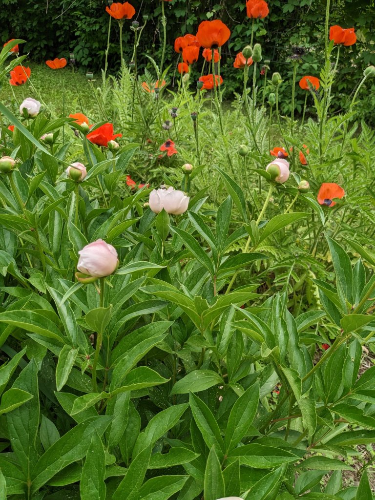 Summer days are here. And the established plantings of bush and flower are big and beautiful. Alas, the garden is not. I’ve planted a lot of flower seeds, some of which I hope become established perennials. But it’s a slow start and rather meager looking. And three apple trees. Yesterday, Benny and Jube put up the electric fence. The dog and the deer will stay out. We hope.