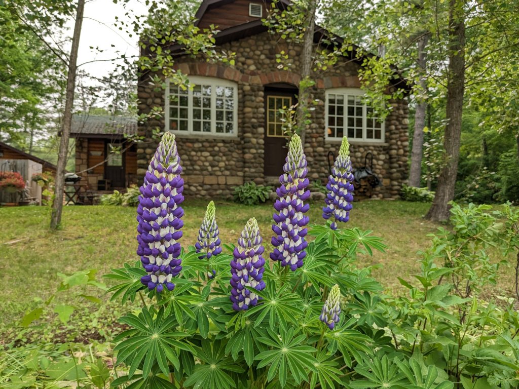 I had to kneel down and hold my camera low to get this perspective and yes, I admit that it’s quite misleading. This patch of lupines is all there are… Six or seven little, short stalks. But we make the most of them each year, thusly. Please help me to enjoy them.