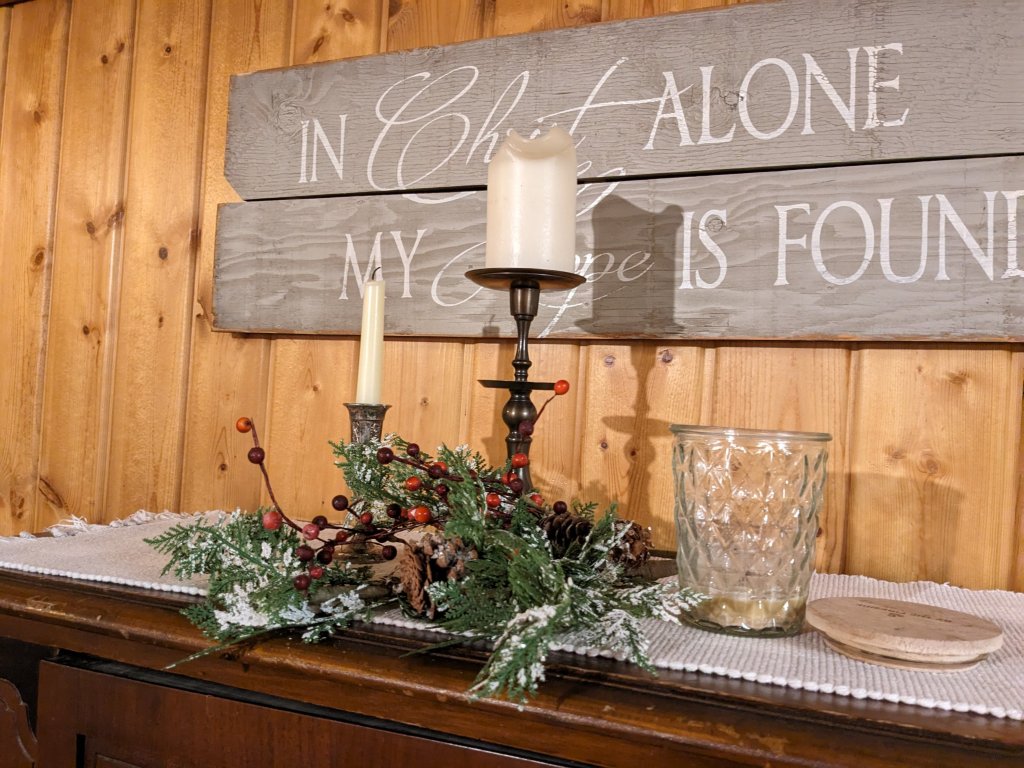 I decorated Christmas today. Huh? What an interesting way to say it, as per the blue line suggestion. I mean I decorated for winter and Christmas today. Bins were opened and sorted. I try to not store anything that won’t still be nice next year, but still, it happens. And then we must have music, Christmas music, of course. I found my favorite playlists on Spotify and Bluetooth-ed it from my phone to an external speaker sitting on the shelf above the coffee bar. All set.