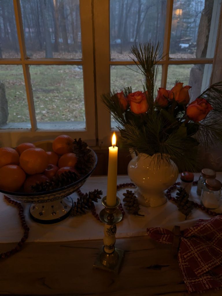 Christmas Eve Day dawned late, again, at almost eight, this morning, gray and misty. The temps are well above freezing and Lily’s lilacs are budding… how sickening. I feel a little desperate about this brown Christmas. It feels all wrong and wonky, somehow, to me. I think I understand better the waiting world during those dark days when Jesus was born.