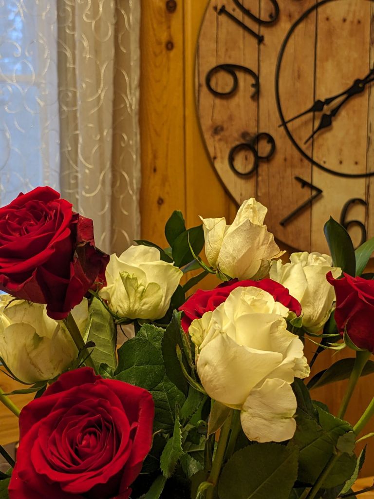 This time of year makes me desperate for green leaves and flowers, and this winter is even more desperate with no snow to speak of. A fresh bouquet of roses is a big deal around here and was much appreciated. Two weeks later, I really do need to tip them for drying.