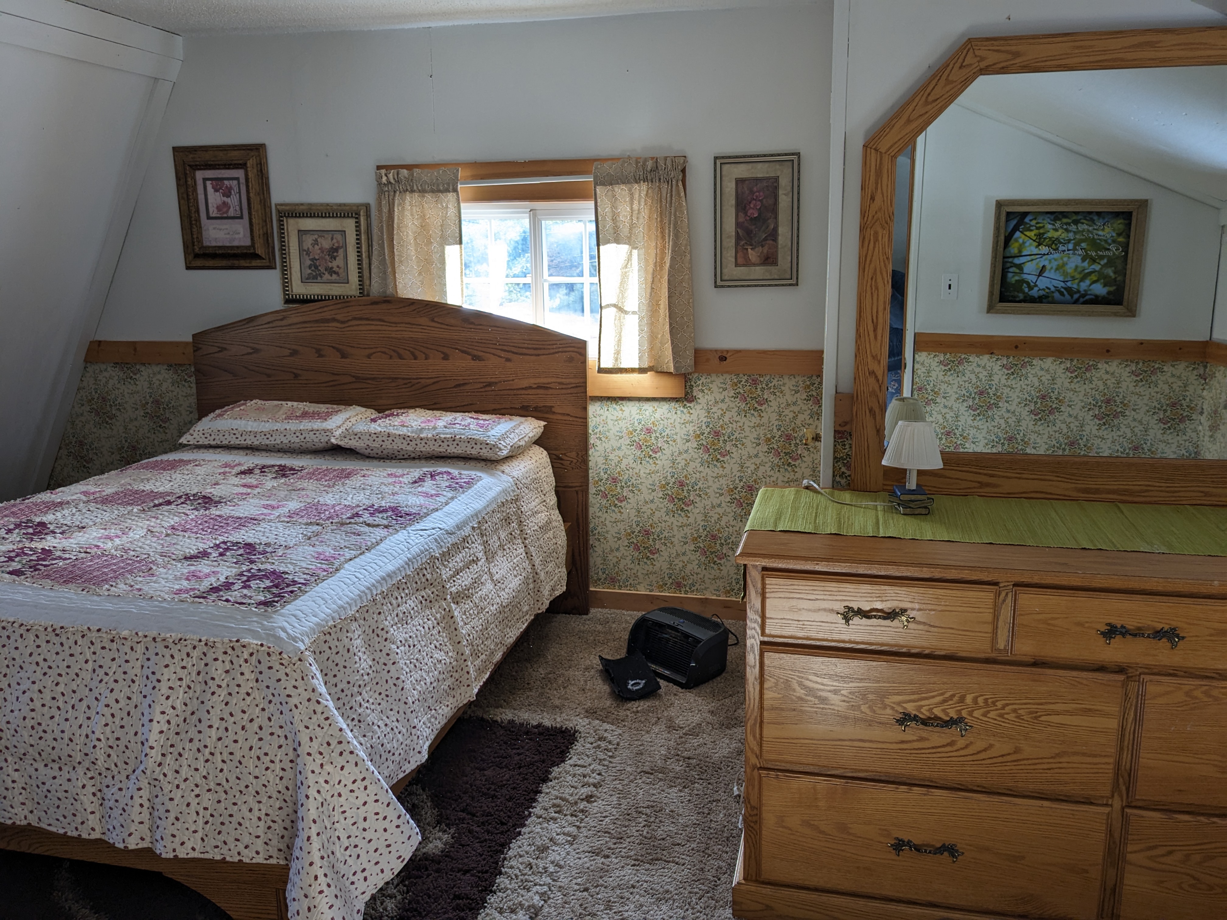 We have a furnished guest room at last. This little room has had quite a spin in the last year. In the end, the crazy ideas have to go away and we must settle for what’s practical and needed. I wanted a piano room/an extra visit space/library room/ play area in this house when we moved back a year ago. Finally, after a few months of some of that sort of happening in this little room with little windows and slanted walls, and an air mattress for guesting, well, the yen wore off. So now with the right furniture and some little touches of hygge and love, we have a veritable guest room. I wanted that, too, after-all. The other spaces happen naturally in the proper places that they will anyway. The children gravitate to the landing on the stairs wherein I tucked a bookcase full of their books. The piano is back to it’s old spot in the living room. Elv’s den is a great place to take a private tete a tete, if you wish. And we have bookcases full of books in more than one room of our house. So we solved it. I’m satisfied.