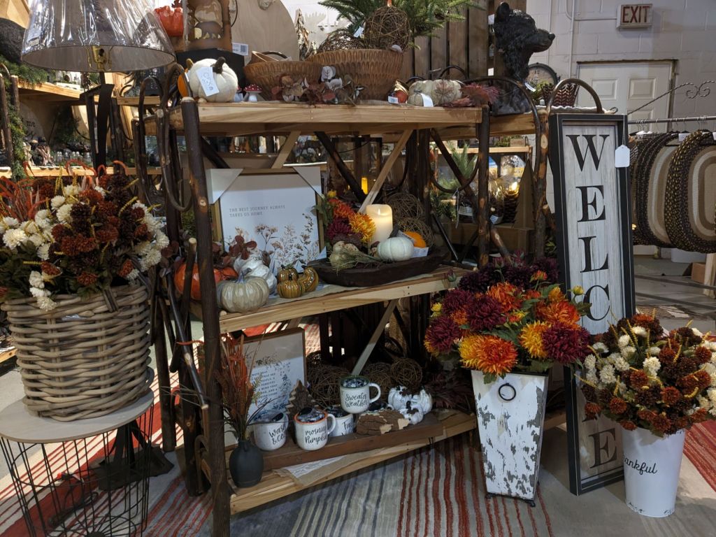 We have a few fall decor displays up and running already. The flowers are extra specially nice, in my opinion. I’m not nearly as impressed with the silly pumpkin craze, but some people are, apparently. And the customer is always right. Thus, we have them in stock.
