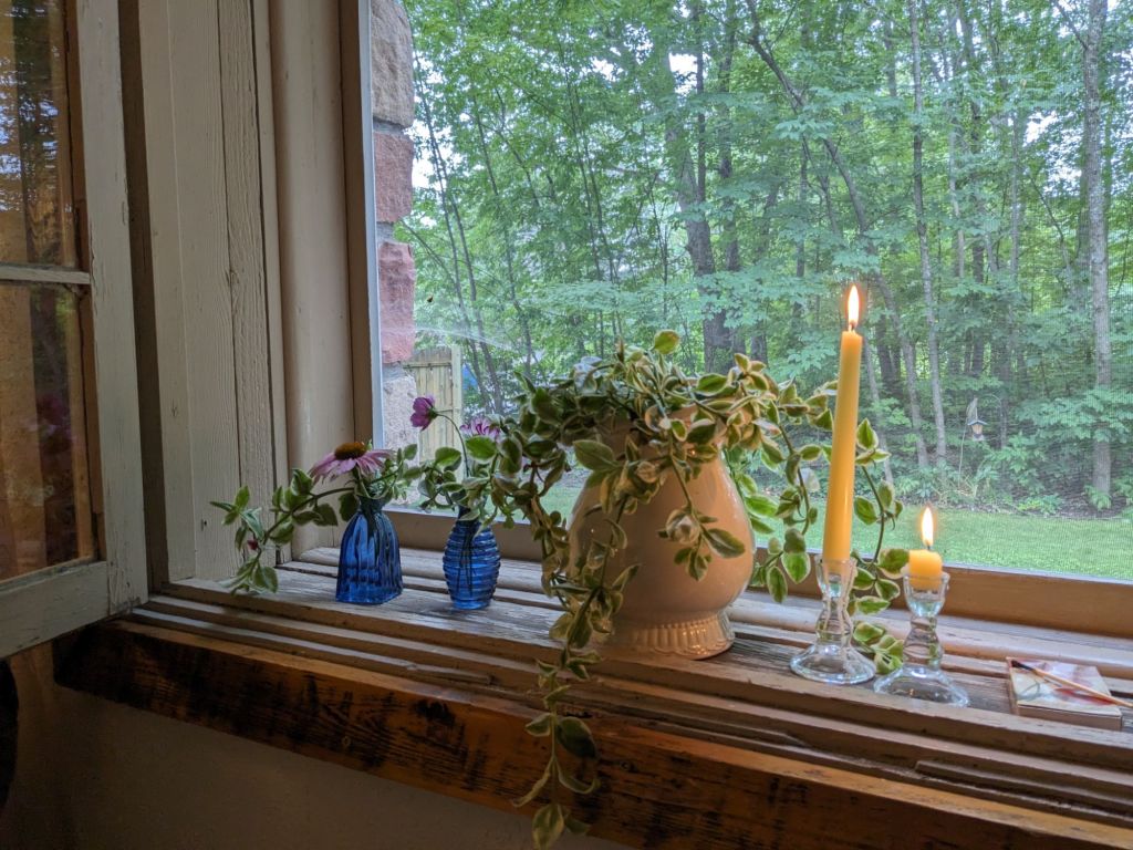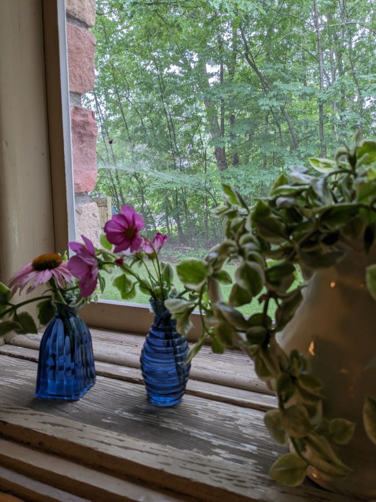 Because the rain settled in, turning my day into a hygge day of house work. It’s chilly, even, which is startling after all the heat, day after day. We even considered making a fire in the stove to take off the damp.