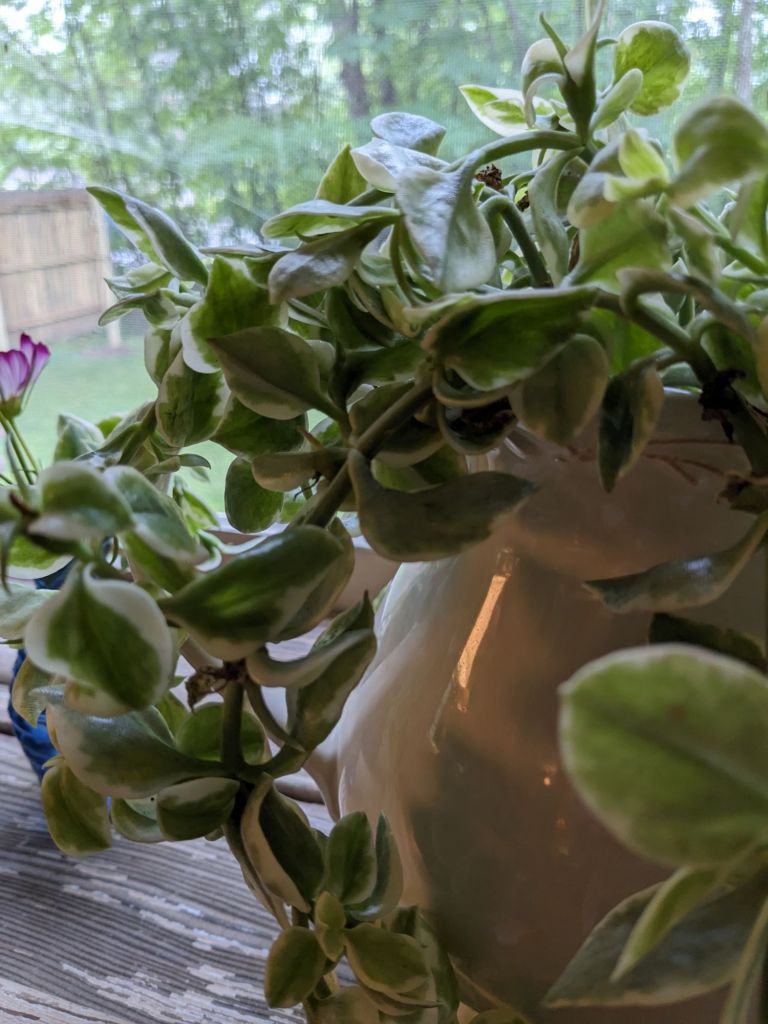 I cut the tails of the succulent off the hanging pot outside and put them to use in a big white pitcher for one of the wide sills. Adding in the candle just for the picture to show how simply a little cozy can be created.