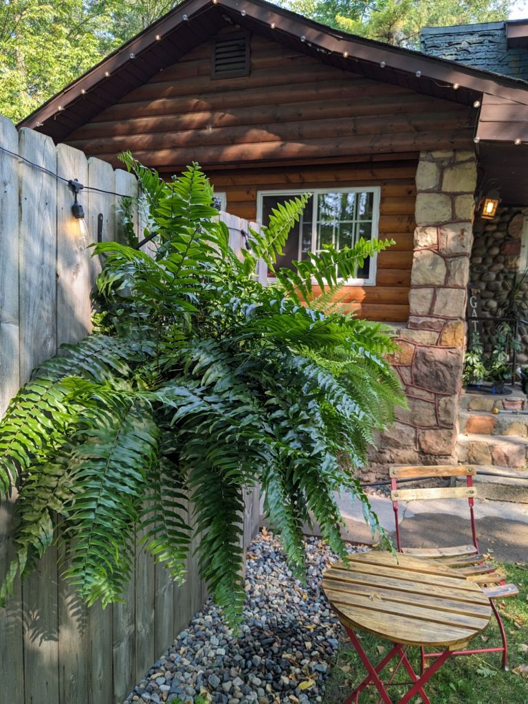 The store where I was fern shopping this spring had a huddle of frost damaged ones in a back corner, no doubt destined for the dumpster. I was asked not to tell you how I came to bring one of them home. I watered it again today and am planning to bring it indoors for the winter. It’s the hugest plant with the widest “wing span” I’ve ever seen for a fern.