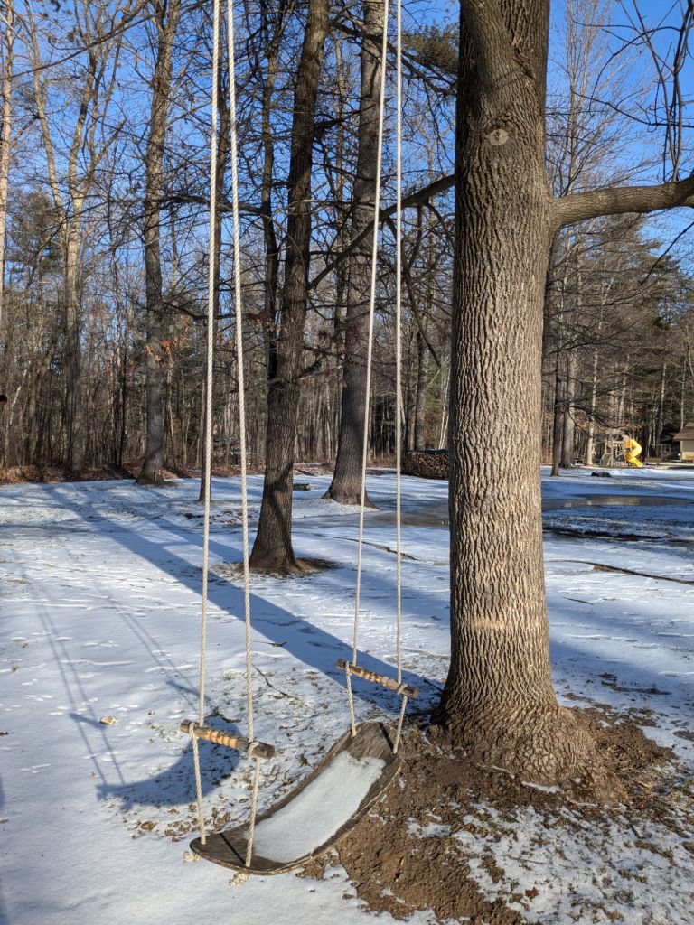 It’s beautiful! The apple trees are snug and safe in their fences. Aha, the rabbits are thwarted. The chickadees and nuthatches were so happy and noisy in the sunshine.