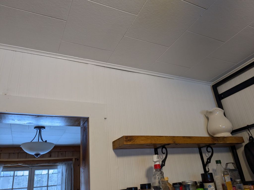 A little L&M Swiss Coffee paint here and there gave me back my clean kitchen. Kristine ought to be proud of me climbing down off my high horse to add a little detail to make things look much better. Sometimes, a little caulk can help, after all.