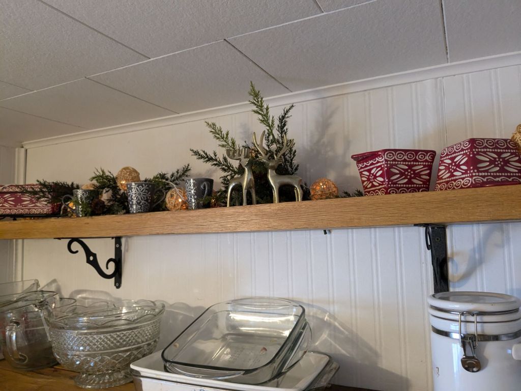 I also redecorated the top shelves in the kitchen. On one side you’ll see that I love letting my Scandinavian side show. And on the other that we definitely live in a cottage. Happy Winter.