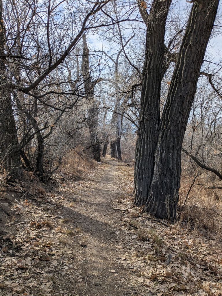 We enjoyed our sunny hike. Elv tried to identify tree species. We found cedar trees, we thought, until we looked up for green needles only to see bare branches. We think the great large, old trees might be cottonwoods.