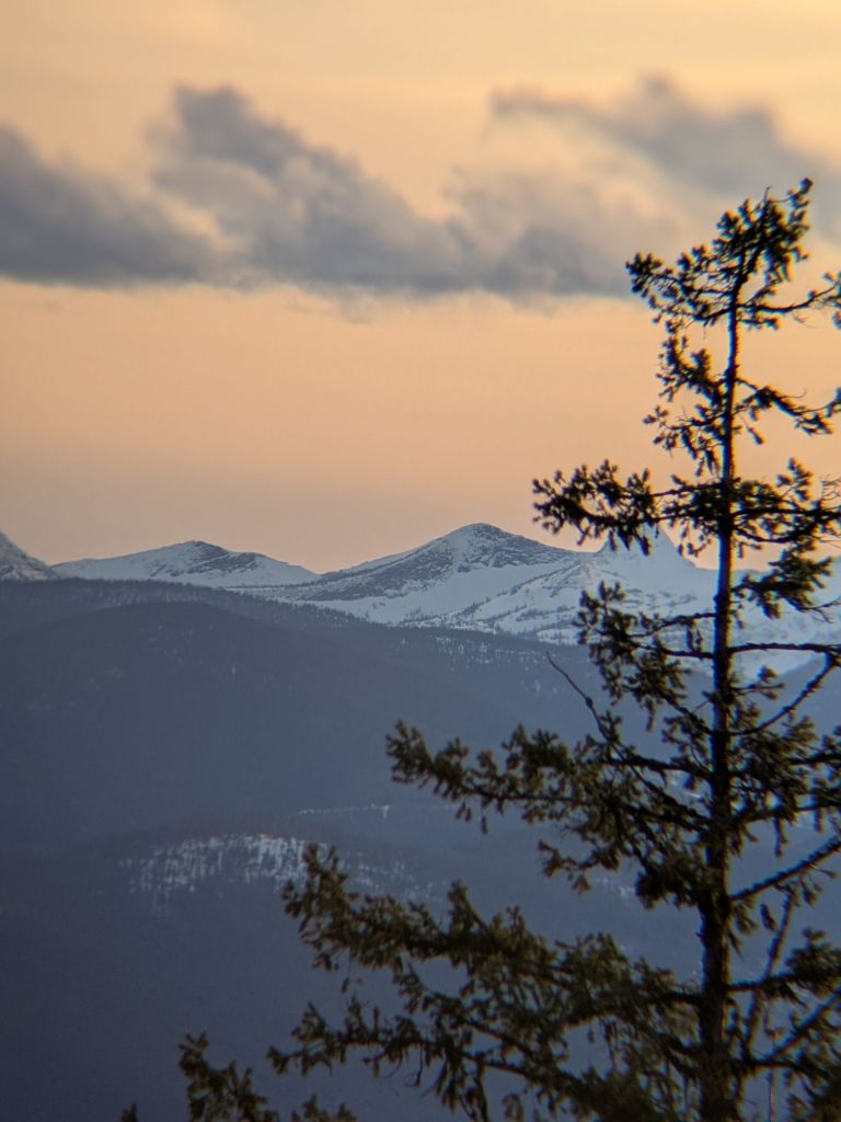 Elv invested in new binoculars the other day, so we took the opportunity to drive up the mountain to use them last night. I used my phone with the binoculars to get this sunset. Here we were on Baldy looking miles across the valley to the snowy peaks there.