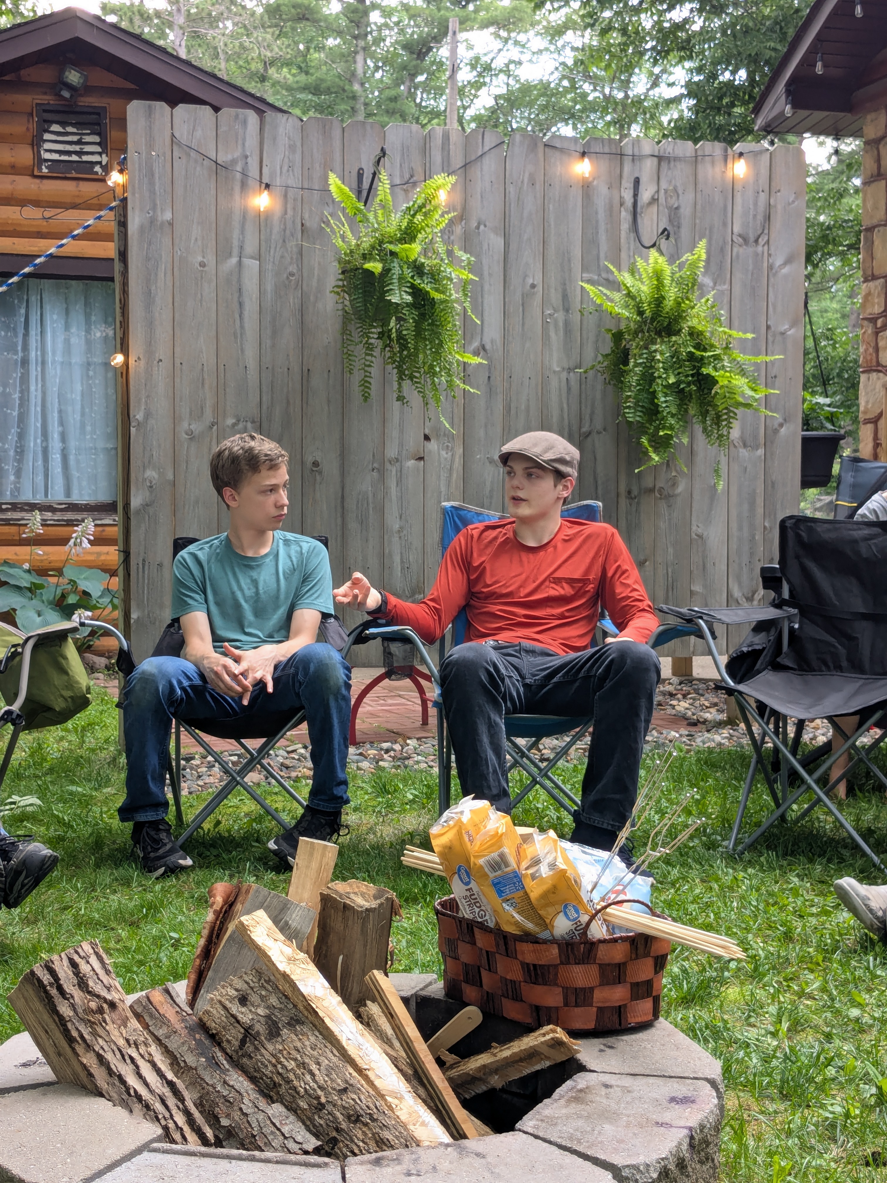 It’s campfire/s’mores time here. Everybody came for Sunday evening grilling and campfire. We have teenagers in the family again and these two are perfect renditions of same. We love it. They have brilliant minds, energy to match so that wisdom is coming right along, as well. Us older folks get to field some wild ideas which must be tempered with good humor and shared wisdom. The idea being purported here had to do with lab-grown meat versus the cattle on a thousand hills. Personally, if I had only lab-grown meat for my daily meat, I would pass. But it sure was fun to listen to the discourse and debate. Laughter.
