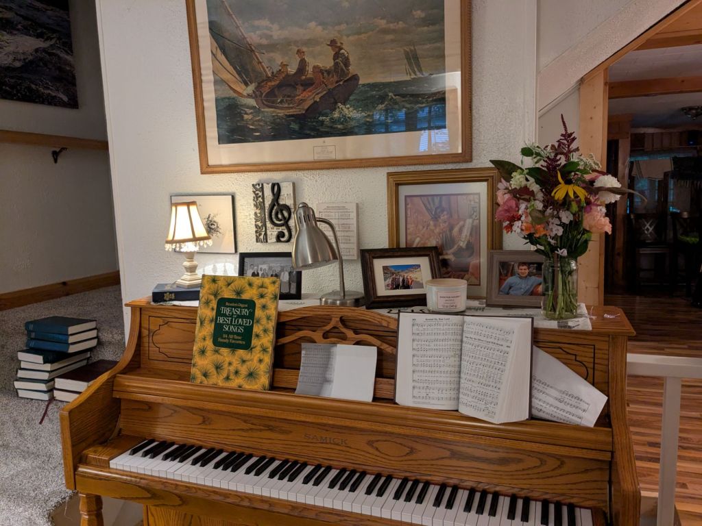 I am excited about singing with Laura and Kristine this fall. We’re going to share some song at the ladies retreat. The whole business is fun: finding music, learning it myself on the piano, getting together to try it and generally looking forward to the whole process.