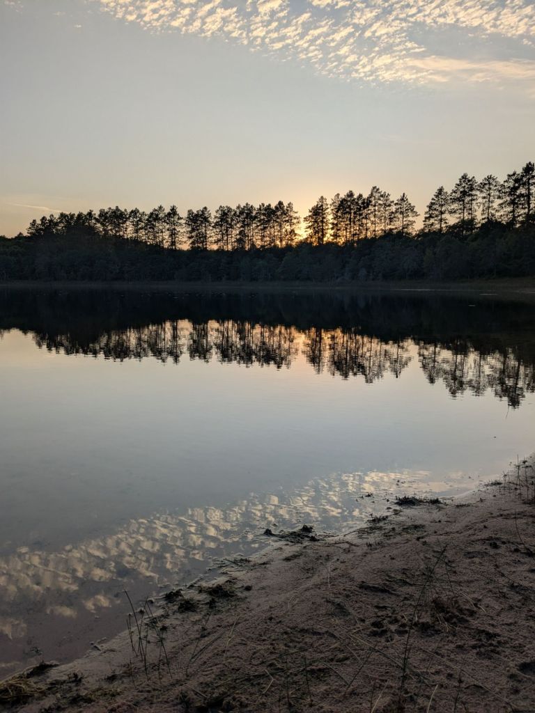Eventually, we sat right by the waters edge and watched the minnows swim by flashing silver. A king fisher kept up a squawking din, diving and fishing just up the shore about 150 feet away. We stayed quiet and listened as the sun went down.